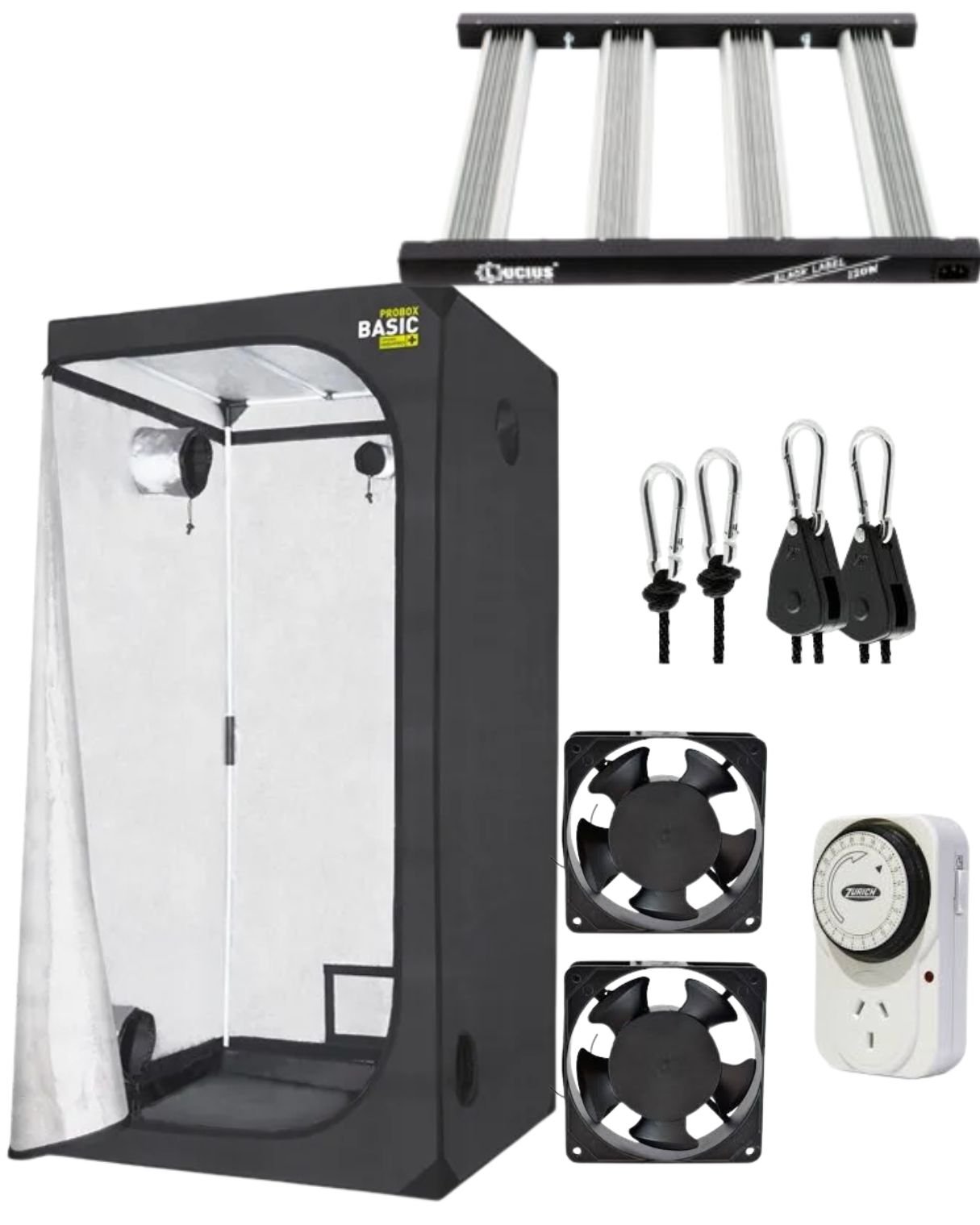 KIT INDOOR 80X80 + LUCIUS DE 120W + COOLERS + POLEAS + TIMER
