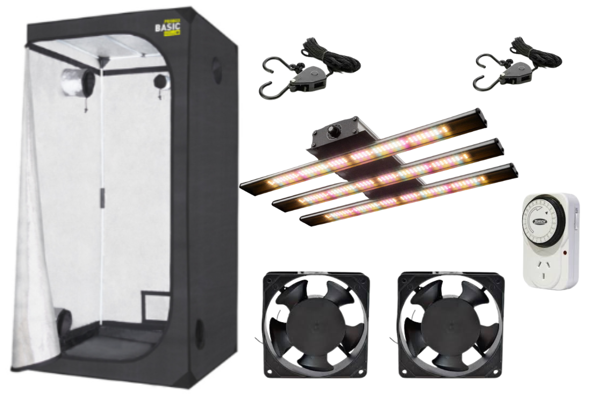 Kit indoor 80x80 + mars led 153e + coolers + poleas + timer cantidad